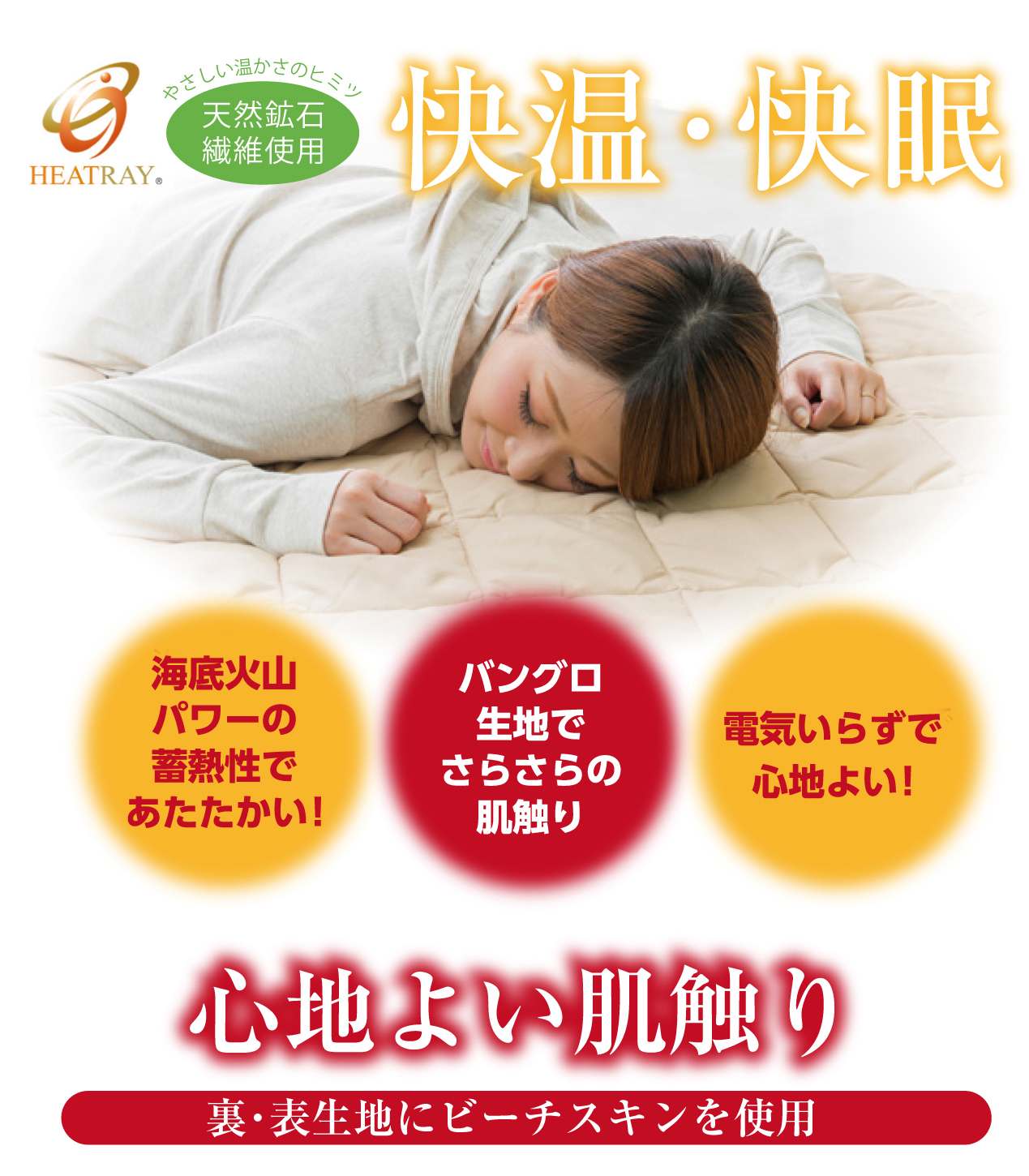 快温・快眠をテーマに、ワンランク上の快適な睡眠環境を提供する、「HEATRAY プレミアム 岩盤浴パッド」です。