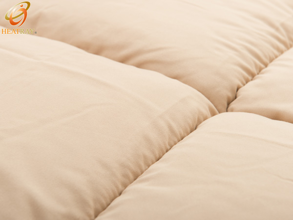 快温・快眠をテーマに、ワンランク上の快適な睡眠環境を提供する、「HEATRAY プレミアム 岩盤浴 掛け布団」です。表・裏生地に心地よい肌触りのピーチスキンを使用。桃の肌触りのような感触で柔らかくしっとりした風合いの素材を採用。これまでの掛け布団に比べて接触温感性も向上し、さらに快適な睡眠へといざなってくれます。